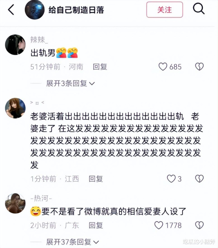 眼看就要靠 “深情” 人设收割一波流量,甚至可能接广告赚钱了,结果评论区突然画风突变 —— 全是骂他 “出轨男”“伪君子”“戏精” 的!