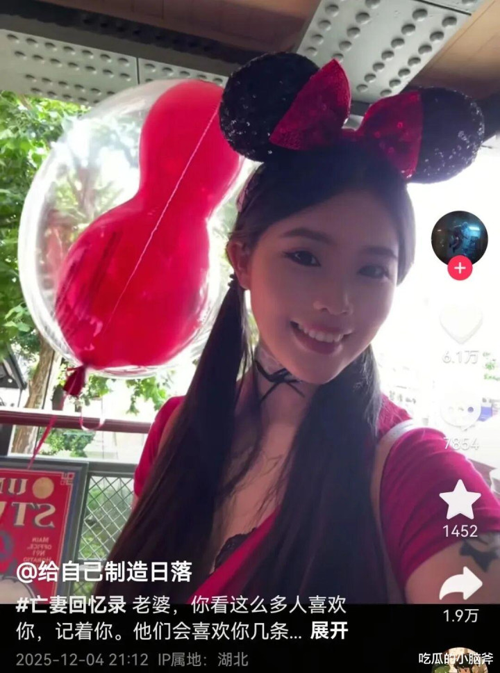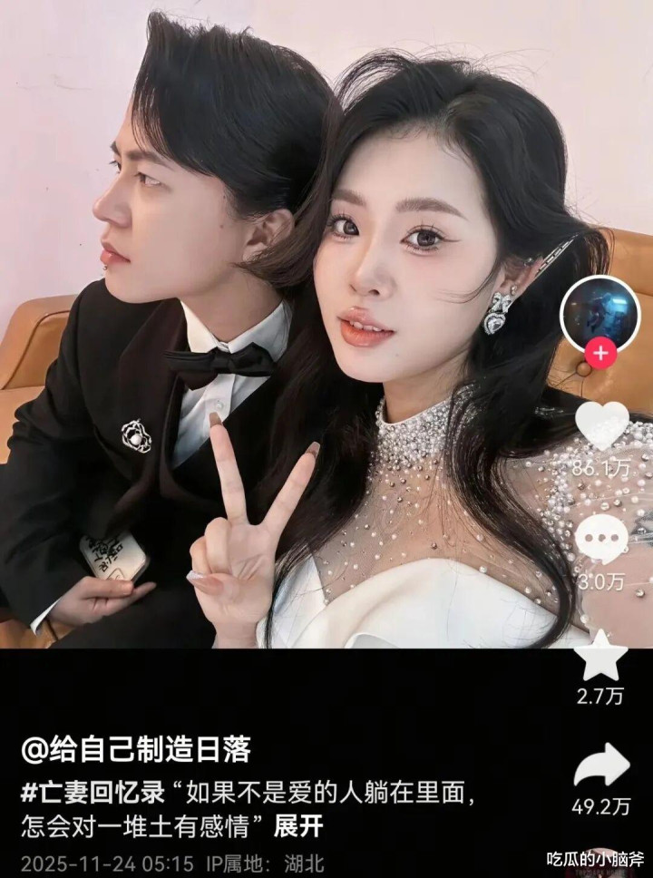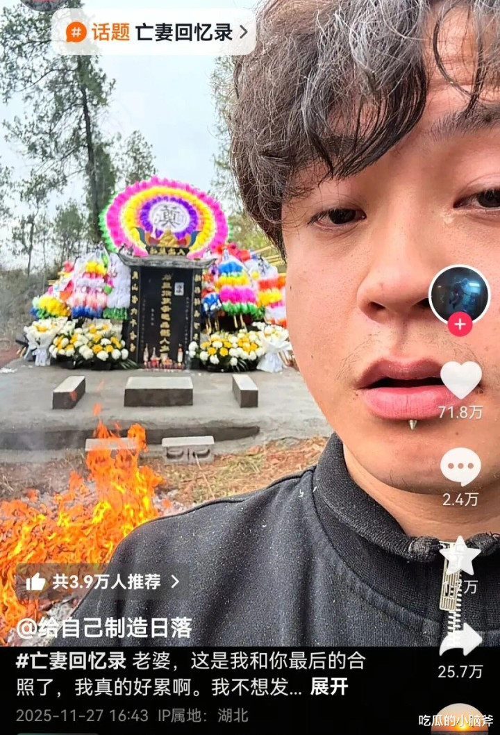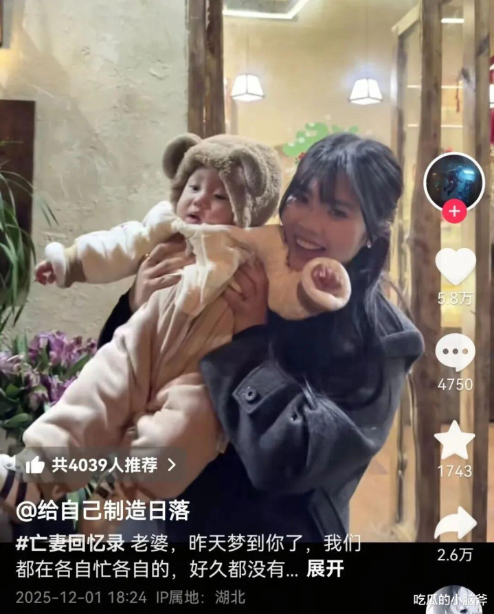 最近他突然爆火,全靠发那些缅怀亡妻的内容 —— 有两人过去的合照,有老婆生前的视频。