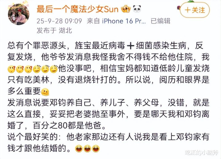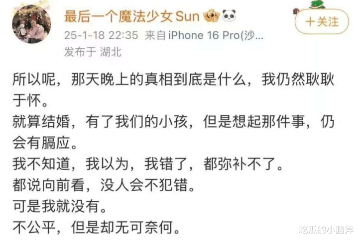 后天又发孩子的视频,配文 “宝宝问妈妈去哪了,我不敢说”,那憔悴的样子,眼窝深陷,胡子拉碴,不知情的还得夸句 “真是重情重义的好男人”。