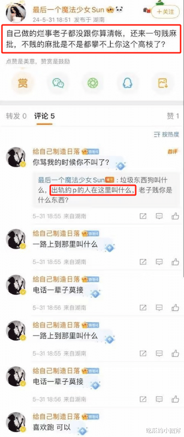 还有其他女生跑到她私信爆料,说 “你老公跟我x过,他还说你不懂事”,甚至把两人的亲密聊天记录发给她;