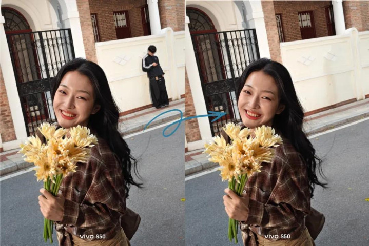 还有用户反馈,在街拍或旅拍中,总有不期而至的路人“抢镜”。S50也接收到了,同档首发「Live路人消除」,在任意一帧圈选路人,AI即刻逐帧智能识别并消除,再也不需要精心P图。
