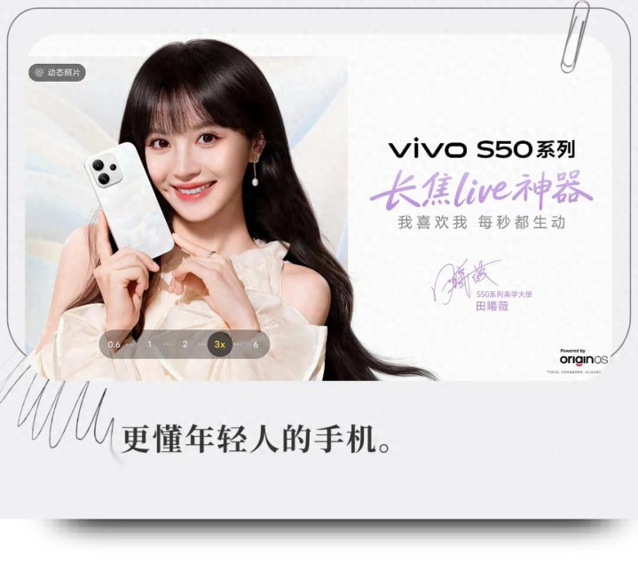 拿S50这样的中端机来说,在配置上vivo是敢于越级的。「Live神器」背后是旗舰级硬件、旗舰级同款算法;性能稳健、能效出色是高通第三代骁龙8s芯片支撑。此外,蓝海电池超快闪充、寰宇智慧通信2.0与OriginOS 6……真正做到——该有的全都有,该强的都很强,让更广泛的年轻用户,以较低成本享受到由前沿科技驱动的旗舰级体验,回应用户内心的情感渴望。